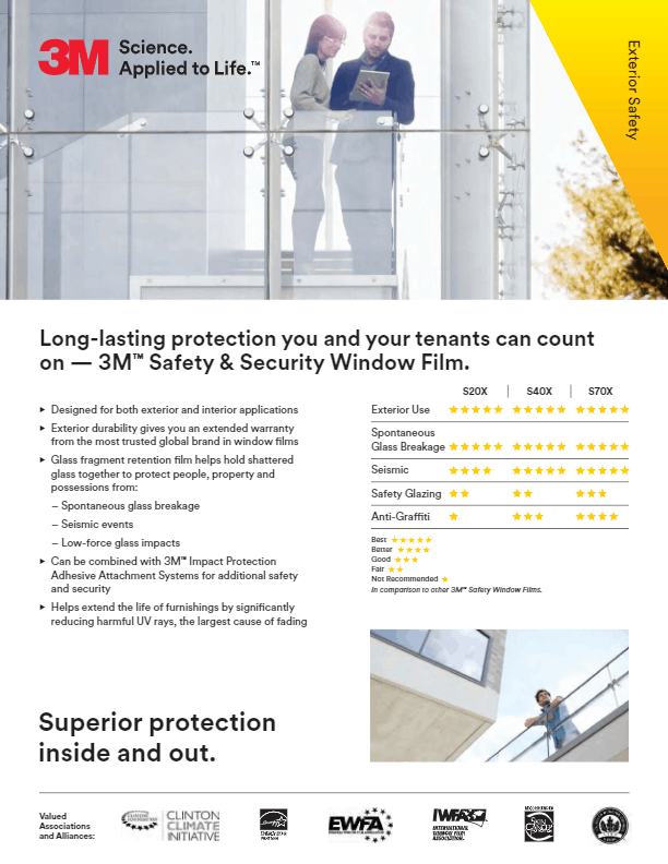 This window protection system combines the toughness of 3M™ Safety and Security Films with an attachment system. Choose either 3M Impact Protection Adhesive or 3M Impact Protection Profile depending upon your overall aesthetic needs.